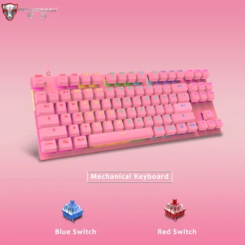 MOTOSPEED Professional Gaming Mechanical Keyboard RGB Rainbow Backlit 87 Keys Illuminated Computer USB for Mac & PC Pink
